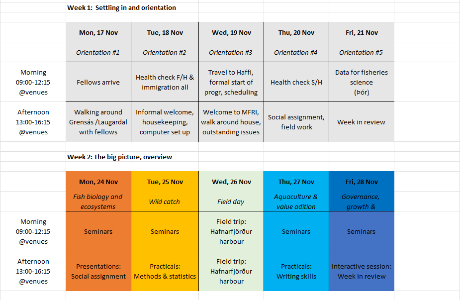 The introductory part occupies the first 7 weeks of the programme and gives fellows a holistic view of fisheries, providing them with insights into various disciplines within fisheries and their connectedness.