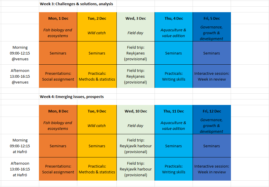 | 10:40 | 12:00 | MFRI - big room 1st floor, near storage | FAO FishStats practicals | Þór Ásgeirsson (director of GRÓ FTP) |