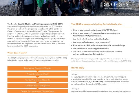 The GRÓ Gender Equality Studies and Training (GEST) programme calls for nominations for its academic programme in 2025. The deadline for nominations is 8 March 2024.