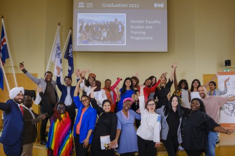Returning to its customary spring schedule, GRÓ GEST celebrated the graduation of the 14th GEST cohort. This year´s GEST graduates represent 15 different countries including Bosnia & Herzegovina, Egypt, Ghana, India, Kenya, Kosovo, Malawi, Moldova, Namibia, Pakistan, Palestine, Serbia, Sri Lanka, Uganda and Zimbabwe. The group includes researchers, activists, artists, government officials, and master’s students with a shared interest and dedication to enhancing gender equality.