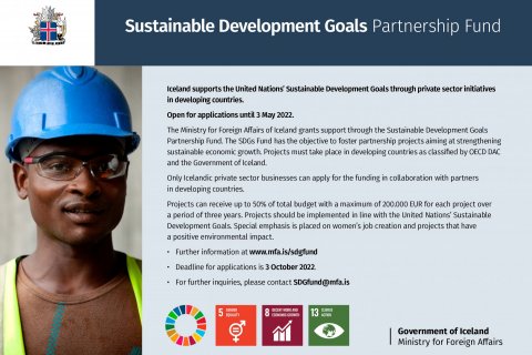 The Sustainable Development Goals Partnership Fund of the Icelandic Ministry for Foreign Affairs is open for applications until 3 October, 2022.