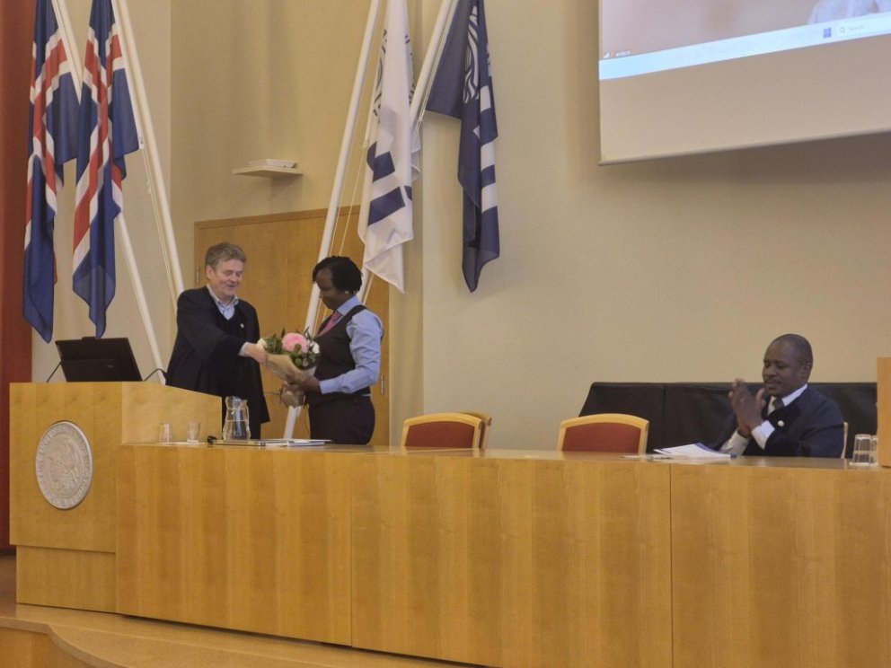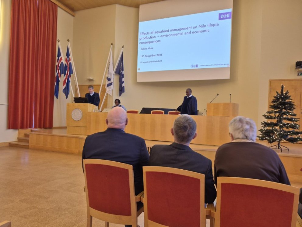 GRÓ Fisheries Training Programme (GRÓ FTP) is proud to celebrate the achievement of Safina Musa, a former fellow (2013) from Kenya who successfully defended her PhD in Biology at the University of Iceland on December 15, 2025. Her doctoral research, entitled, Effects of aquafeed management on Nile tilapia production – environmental and economic consequences, focused on improving aquaculture practices for Nile tilapia in East Africa, tackling key challenges related to feed management, production costs, and environmental sustainability.