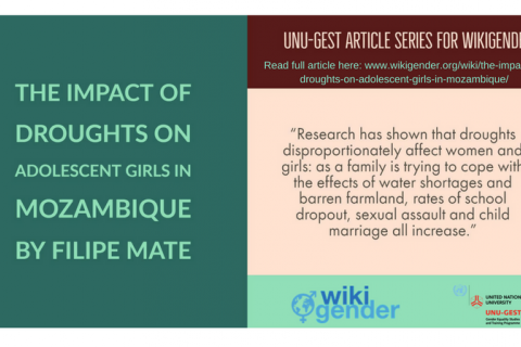 Wikigender University online article series by UNU-GEST fellows from the class of 2017 continues. Kevin Ogbajie from Nigeria writes about Supporting Rural Women’s Access to Agricultural Finance in Nigeria and Filipe Mate explores the impact of droughts on adolescent girls in Mozambique.