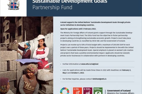 Recognizing the critical importance of the private sector in driving sustainable development, the Ministry for Foreign Affairs in Iceland established the Sustainable Development Goals Partnership Fund in 2018.