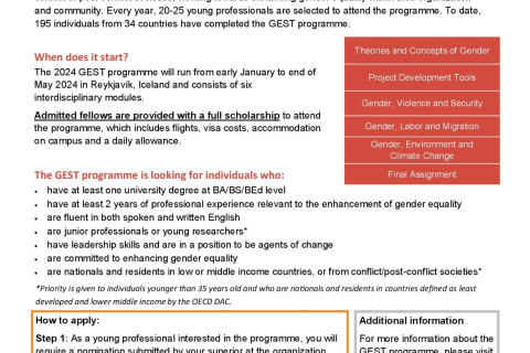 The GRÓ Gender Equality Studies and Training (GRÓ GEST) programme calls for nominations for its academic programme in 2024. The deadline for nominations is 8 March 2023.