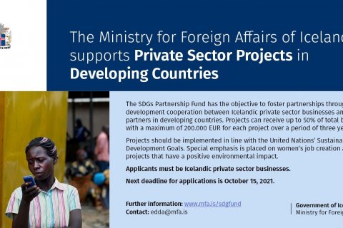 An announcement on funding support for the SDGs from the Icelandic Ministry for Foreign Affairs.
