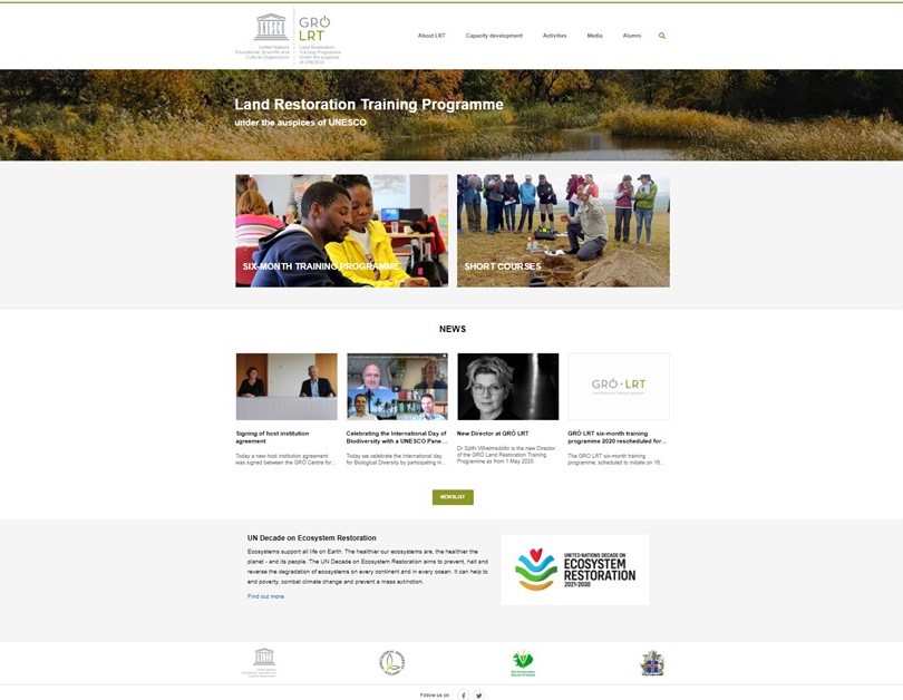 After many years of fruitful collaboration, the United Nations University and the Land Restoration Training Programme have parted ways, along with the other three training Programmes in Iceland on fisheries, gender equality and geothermal energy. As of 1 January 2020, the four Programmes are a part of the new UNESCO category 2 centre GRÓ International Centre for Capacity Development, Sustainable use of Natural Resources and Societal Change. The Centre operates under its own legal identity and is a unit within the Ministry for Foreign Affairs in Iceland. It is guided and overseen by a Governing Board, appointed by the Iceland Minister for Foreign Affairs, the Iceland Ministry of Education, Science and Culture, the Director-General of UNESCO, the Icelandic National Commission for UNESCO, and the Icelandic Development Cooperation Committee.