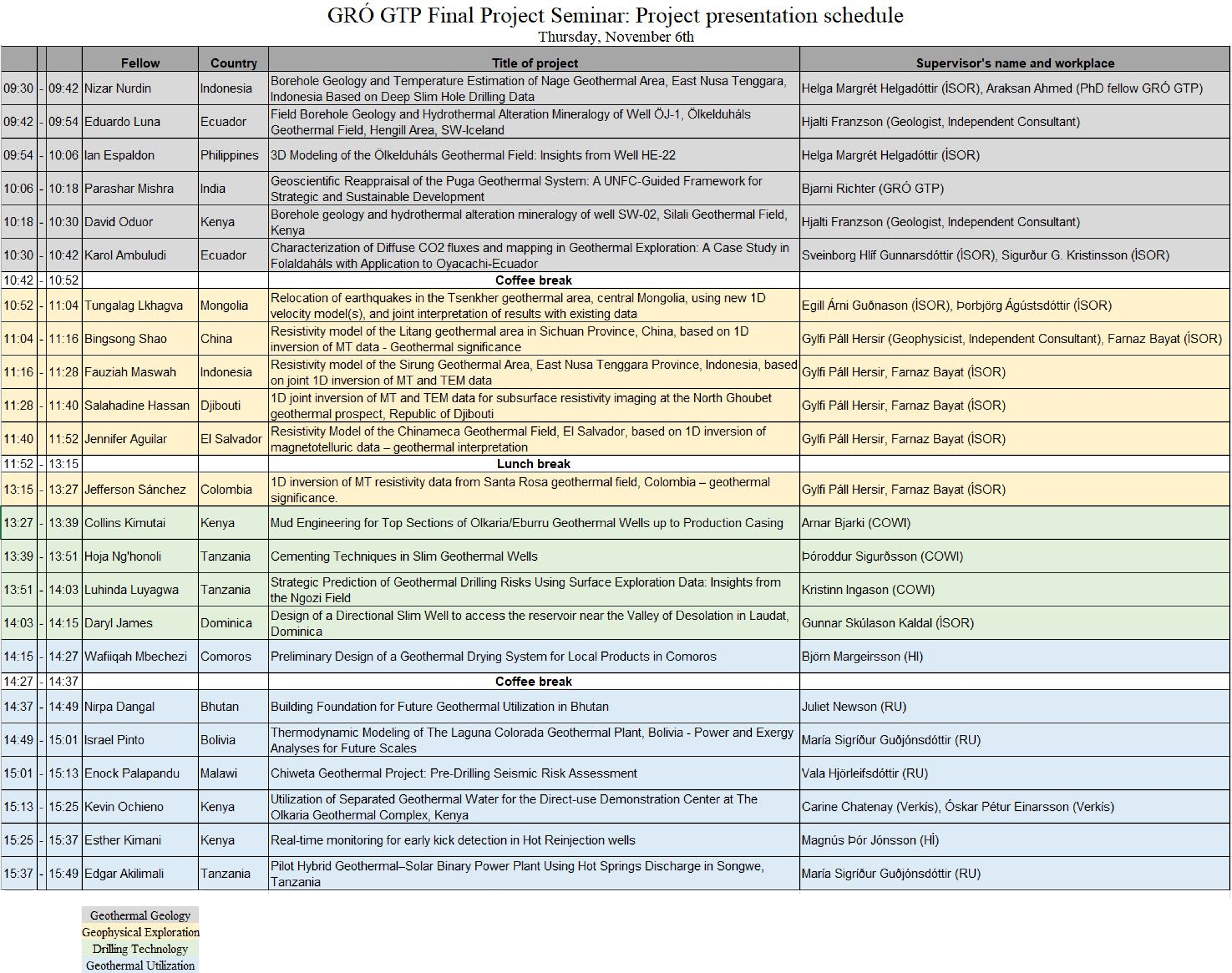 The schedule will start from 09:30 on Thursday 6 November at the GTP office in Urdarhvarf 8B (4th floor).