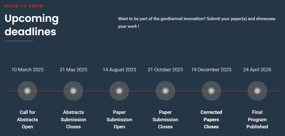 The World Geothermal Congress - WGC2026 will be held in 8-12 June, 2026 in Calgary, Canada